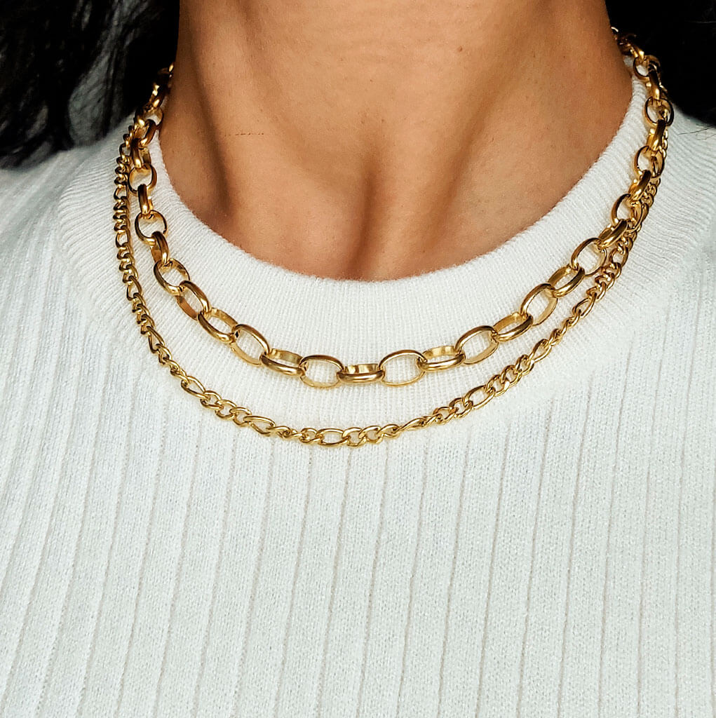 - Material: Acero bañado en oro